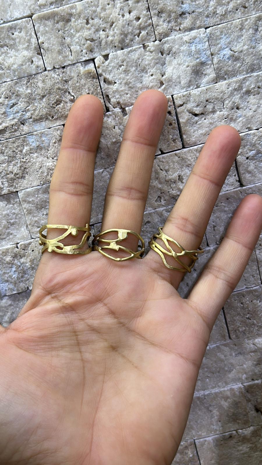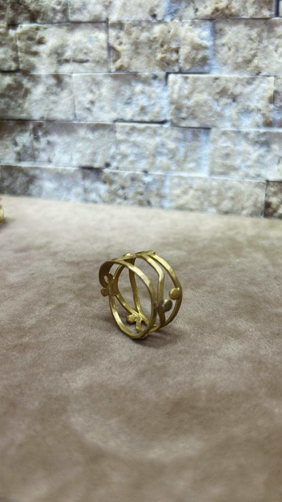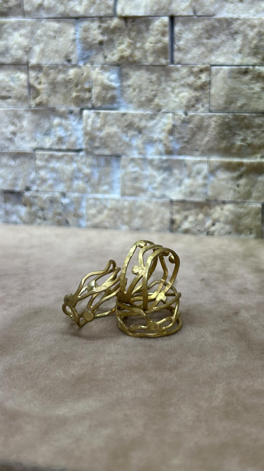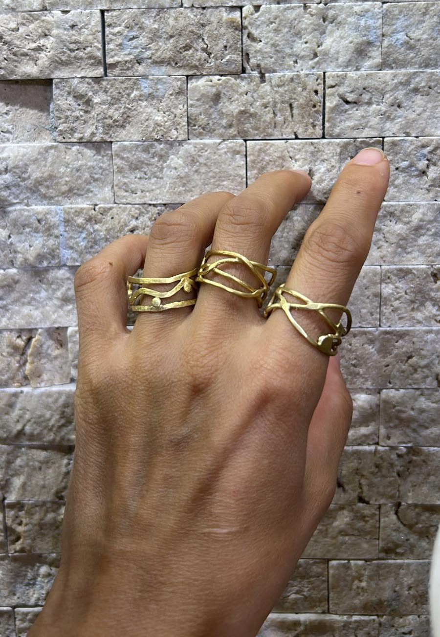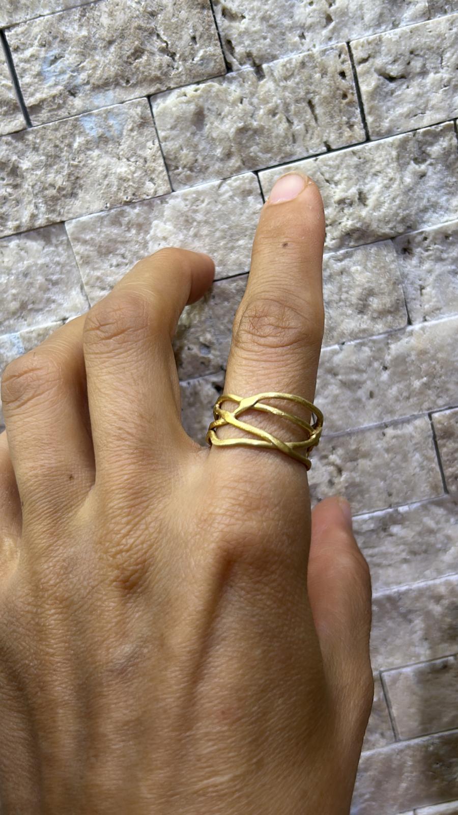 Organik çizgiler ve zarif detaylarla tasarlanan, 925 ayar gümüş üzeri altın kaplama el işçiliği yüzük. Modern ve özgün bir şıklık sunar.