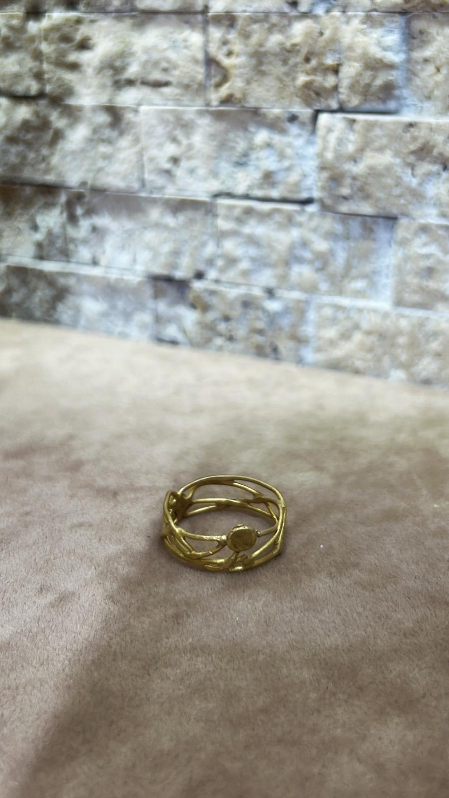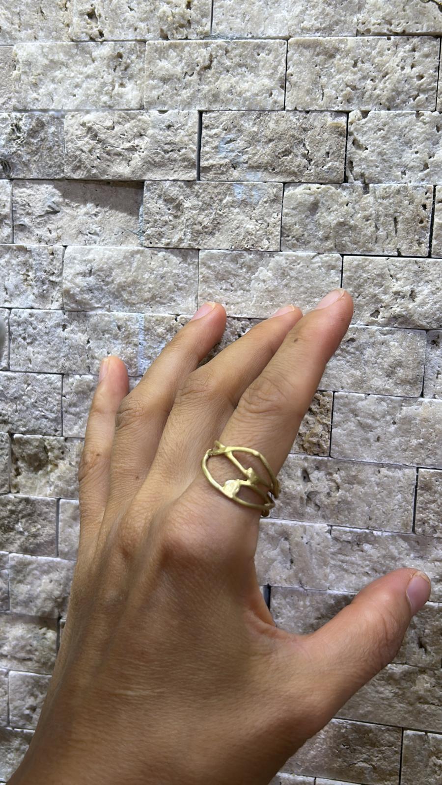 Organik çizgiler ve zarif detaylarla tasarlanan, 925 ayar gümüş üzeri altın kaplama el işçiliği yüzük. Modern ve özgün bir şıklık sunar.