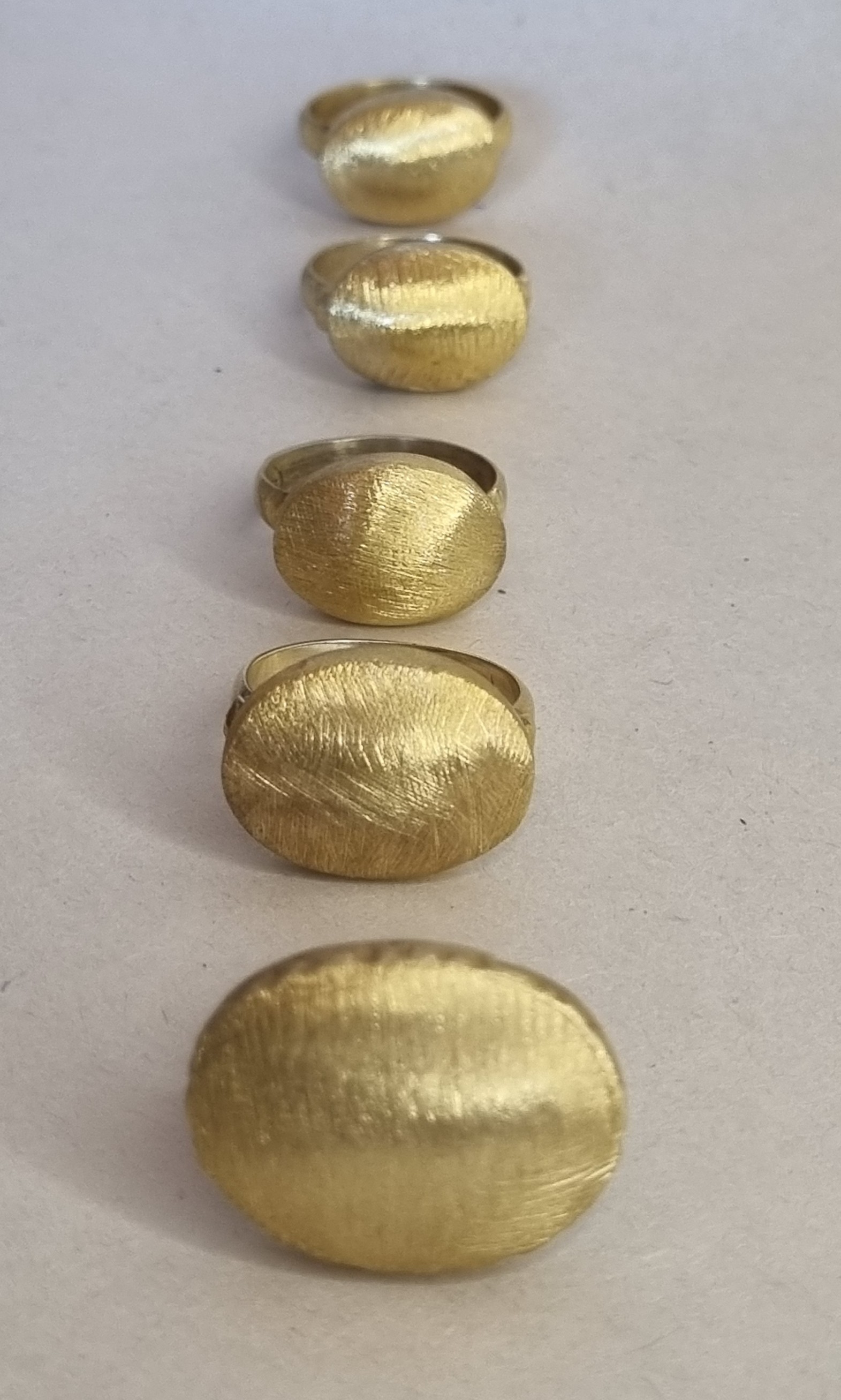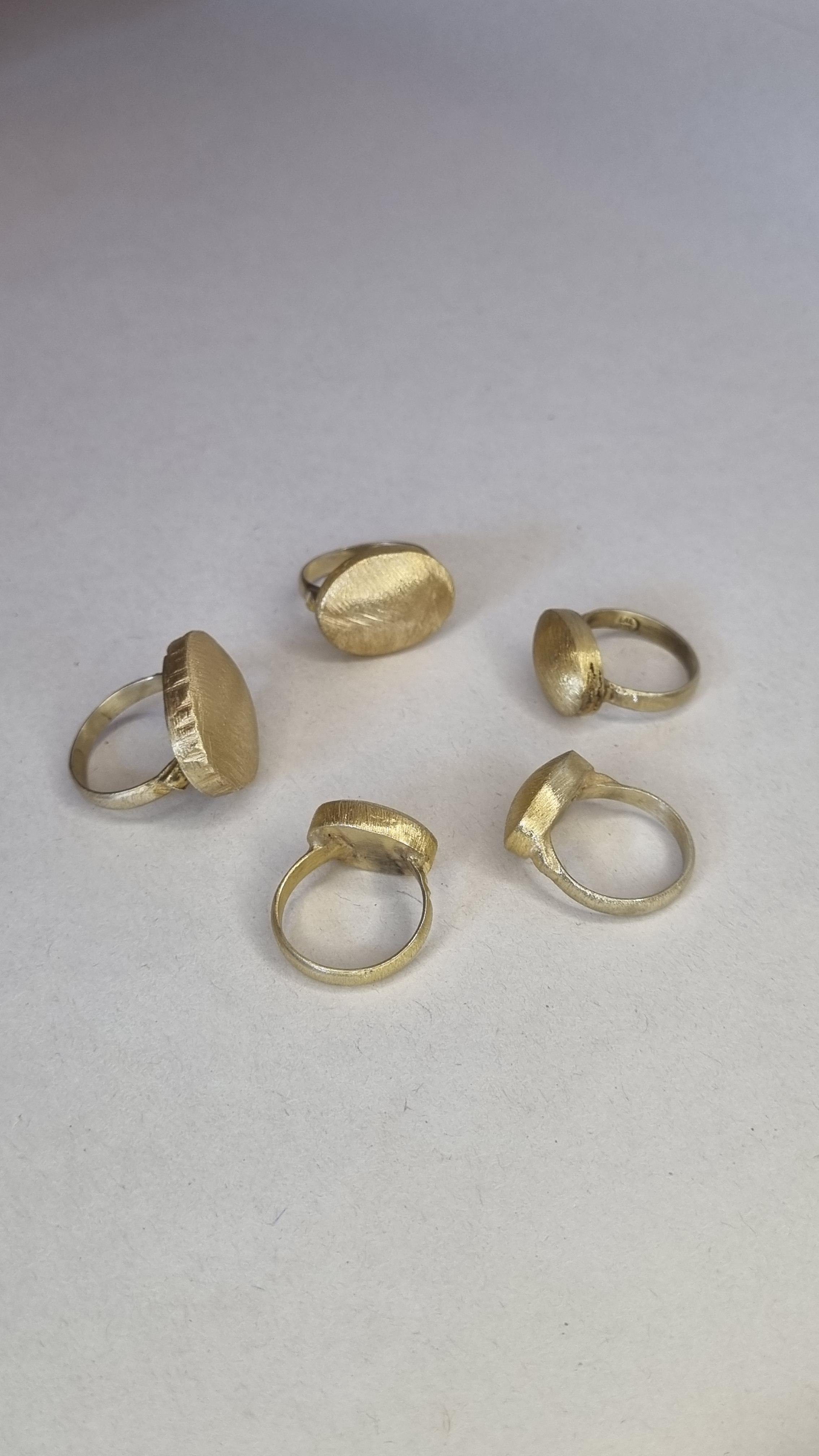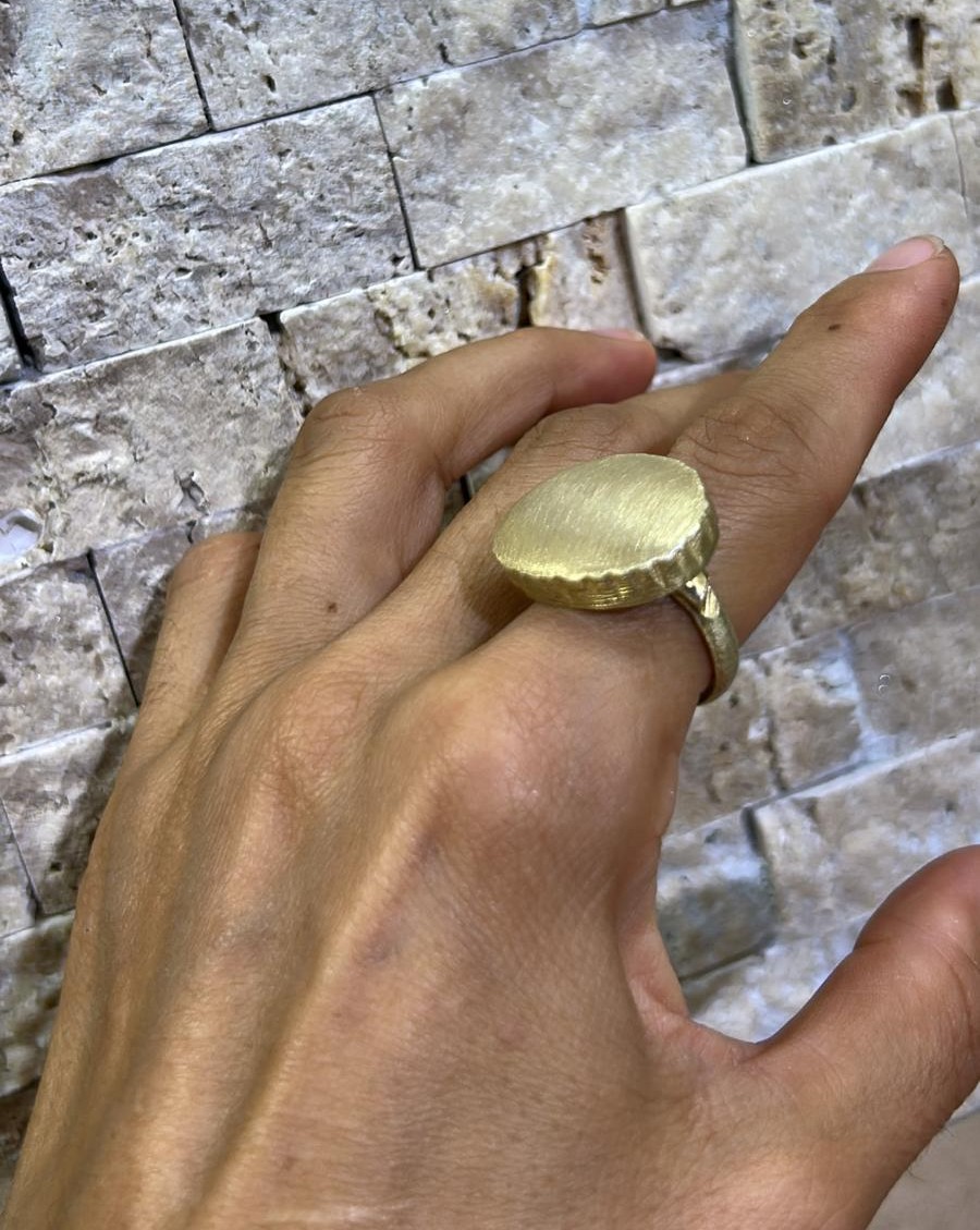Has gümüşten, bütünüyle el işçiliğiyle üretilen “İz Oval” koleksiyonu; çekiç darbelerinin bıraktığı izleri ve oval formun yalın zarafetini bir araya getiriyor. Her yüzük benzersizdir; mat yüzeyiyle doğallığı, sade çizgileriyle zamansızlığı temsil eder.